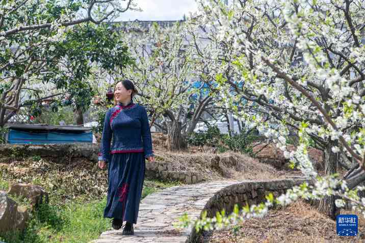 3月25日,在重庆市巫山县曲尺乡,游客在李树种植园内赏花游玩。