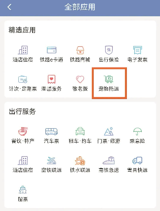 铁路12306 APP上已经能找到相关“宠物托运”功能