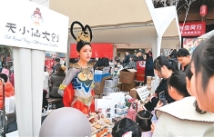 游客在甘肃天水“天水麻辣烫吃货节”现场选购文创产品。