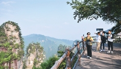 韩国游客在湖南张家界国家森林公园黄石寨景区游览。