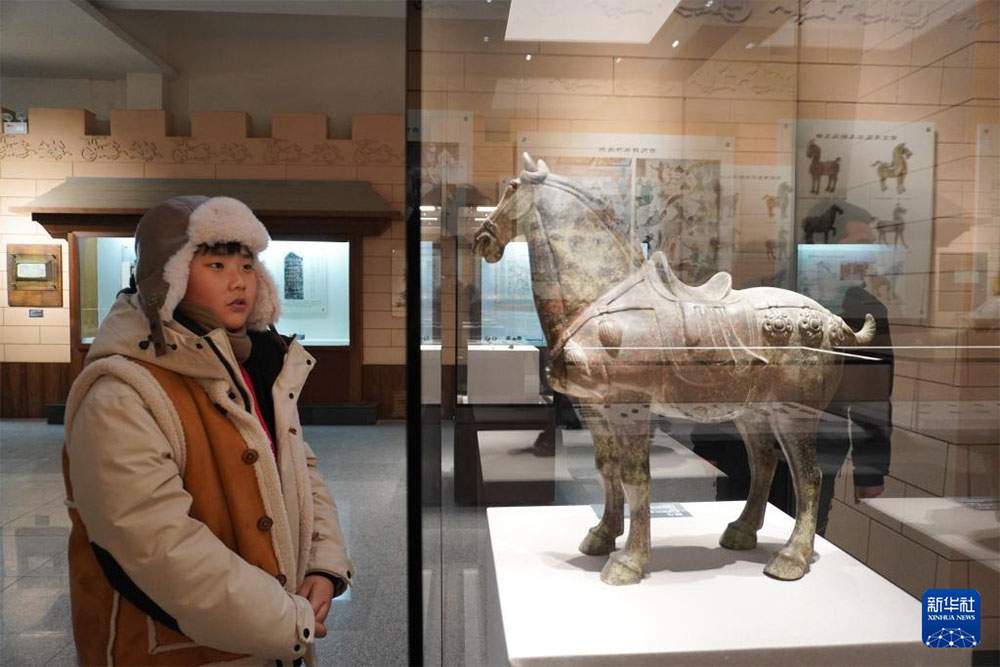 1月21日,在甘肃省敦煌市,参加研学活动的学生参观阳关博物馆。