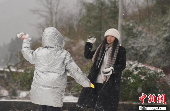 1月22日,桂林市区一所幼儿园,孩子们在打雪仗。