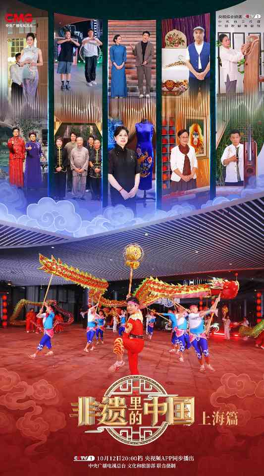 由中央广播电视总台与文化和旅游部联合摄制的大型文化节目《非遗里的中国》上海篇于10月12日20:00档在央视综合频道(CCTV-1)播出,央视频全网独家首播。