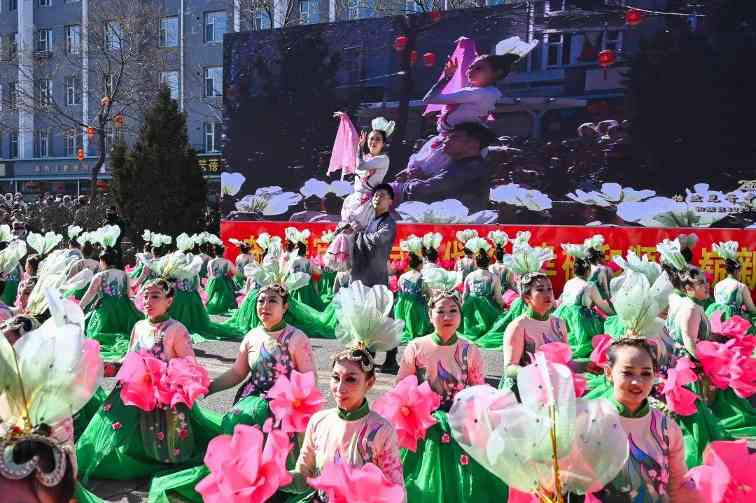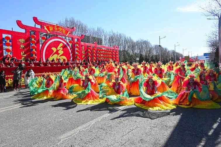 上午十点整,在喧天的锣鼓声中,文艺游行活动正式拉开帷幕。来自全县各乡镇(城区)的9路队伍,与各系统的11路队伍从太和路出发,途经永和路,在北内环开展游行活动,为沿路的群众送上新春祝福。演员们精心打扮、身着鲜艳的服饰,伴着欢快的鼓点,一路欢歌而来。舞蹈、歌曲、情景演绎、英歌舞等传统社火项目轮番上演,每一支队伍都身着节日盛装,以饱满的精神状态投入到表演中。锣鼓阵阵、狮舞翩跹,欢快的节奏、优美的舞姿,原汁原味的表演瞬间把喜气洋洋的气氛传递给了在场所有的观众,人人拍手叫好,现场一派热闹景象。