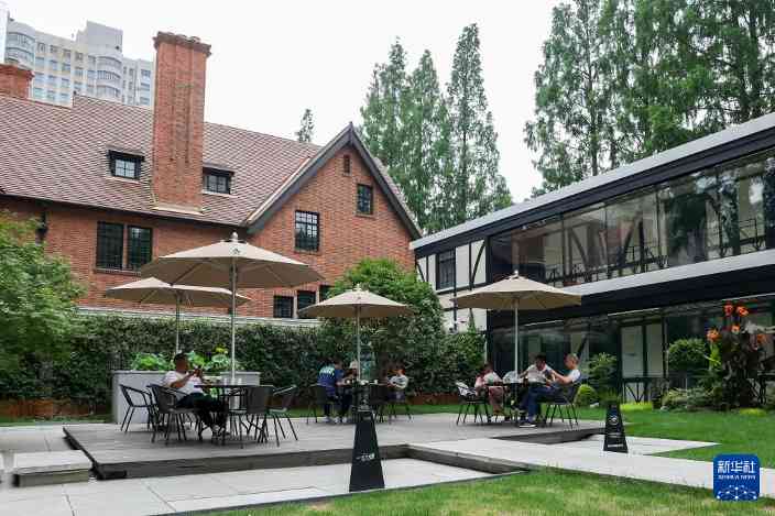 5月31日,人们在位于上海市长宁区新华路的一尺花园(安和花园店)咖啡馆前喝咖啡。