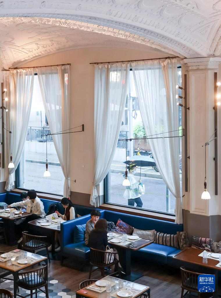 6月2日,人们在位于上海市黄浦区汉口路上的The Press咖啡馆喝咖啡。