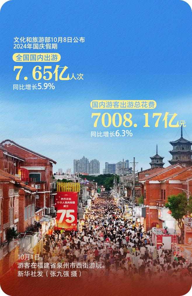 7.65亿人次出游!一组数据看国庆假期消费活力 日期: 2026-02-20 08:02 栏目:旅游新闻 浏览: 标签: 上一篇:里水锦龙盛会总结长图 下一篇:一塘烟火暖湘西 相关推荐 纪念抗战胜利80周年主题展览7月8日起向公众开放 暑期旅游高峰将至 全国范围内将开展旅游市场秩序整治 流行千年的潮范儿――国家图书馆举办2025年“非遗讲座月”广东专场活动 暑期文旅市场火热 个性化毕业旅行受青睐
