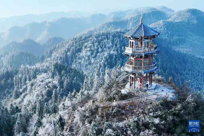 12月15日在重庆市酉阳土家族苗族自治县清华林场拍摄的雪后景色(无人机照片)。冬日里,银装素裹的山川万物呈现出别样美景。