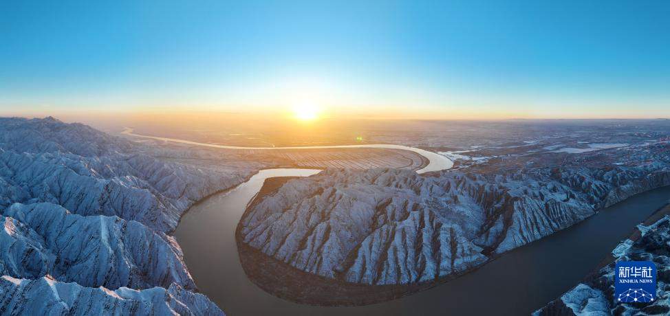 12月14日在宁夏回族自治区吴忠市青铜峡拍摄的雪后黄河景色(无人机照片)。冬日里,银装素裹的山川万物呈现出别样美景。