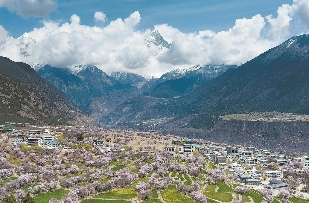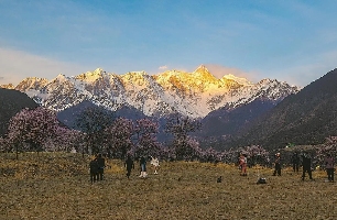 林芝悄然间披粉霞 共赴雪山下桃花约