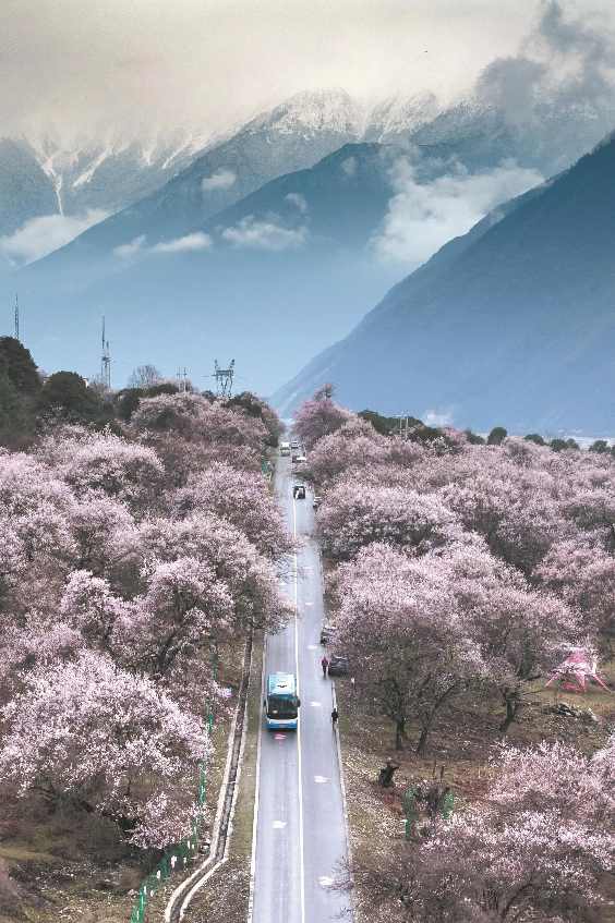 4月,高原的冰雪尚未完全消融,林芝却已悄然披上粉霞。雪山下、峡谷间、青稞田里、村庄院中,桃花绽放,落英缤纷。4月3日,林芝第二十二届桃花旅游文化节盛大开幕,四海宾朋齐聚于此,共赴一场雪山下的春日之约。