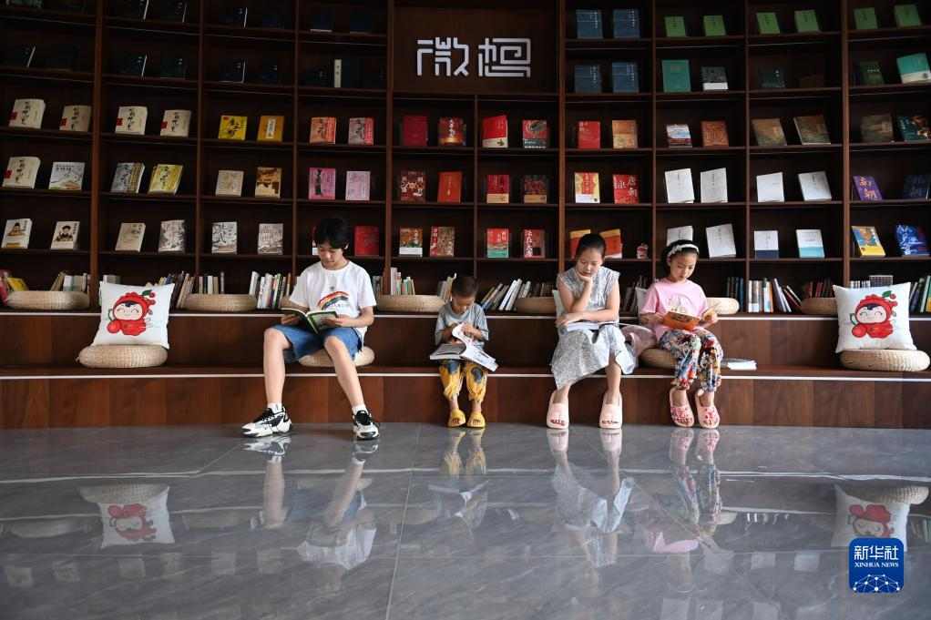 8月20日,小朋友在余姚市四明山镇“唐诗书屋”阅读书籍。